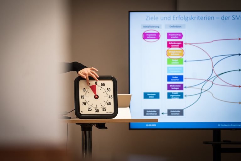 Darauf aufbauend lässt sich das Gelernte in der Praxis umsetzen und durch Methoden und Strukturen etabliert sich eine Projektmanagement-Kultur, die Wissen und Praxis aus den Projektteams ins gesamte Unternehmen trägt.