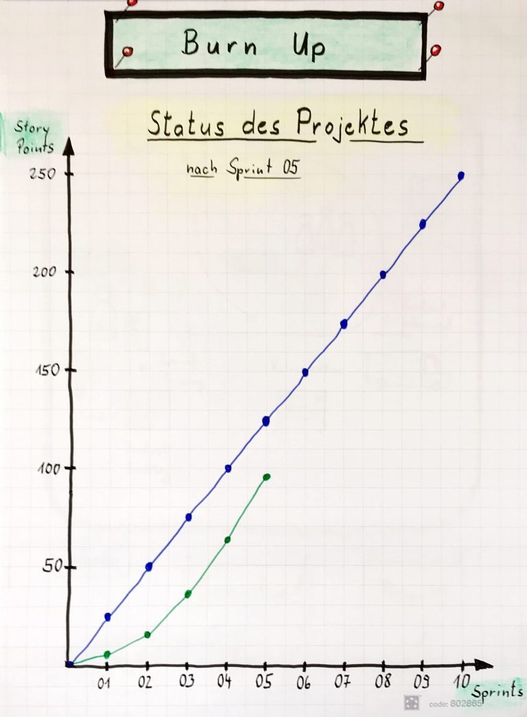 Die Agilisten unter Euch werden jetzt sagen: „Wie kann er es wagen, Story Points in Euro umzurechnen!“. Zugegeben, das ist eine sehr einfache Methode. Voraussetzung ist die Pflege des Burn Ups oder des Business Value.
