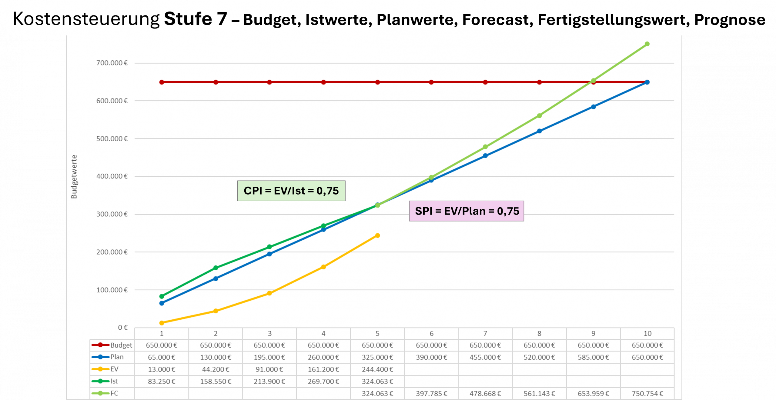 Stufe 7 – Prognosen mit der Earned Value Methode
